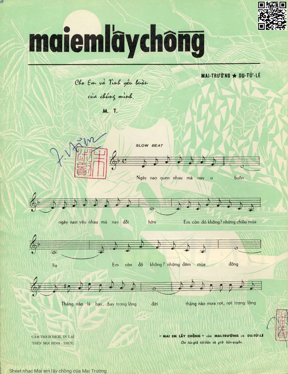 Chọn nút dấu + để tăng tông lên nửa cung, nút dấu - để giảm tông xuống nửa cung. Rê chuột vào hợp âm để xem các thế bấm hợp âm của bài hát Mai em lấy chồng.