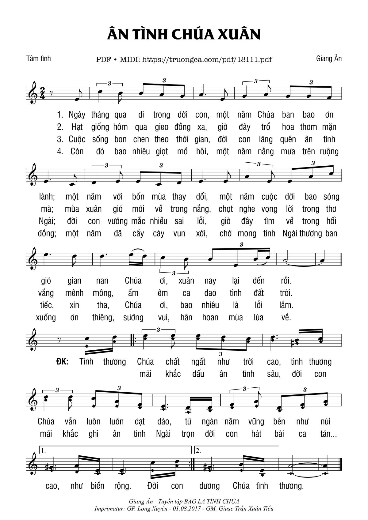 Giang Ân Ngày tháng qua đi trong đời con một năm Chúa ban bao ơn lành một năm với bốn mùa thay đổi [PDF] [Sheet] [Lời H.A] [Mp4/Midi]