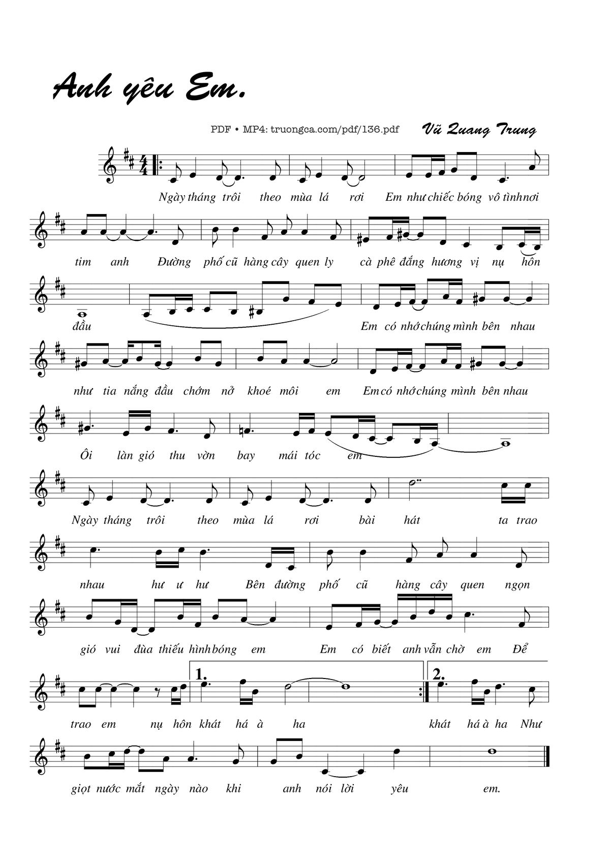 Vũ Quang Trung Ngày tháng trôi theo mùa lá rơi Em như cái bóng vô hình nơi tim anh [PDF] [Sheet] [Lời H.A] [Mp4/Midi]