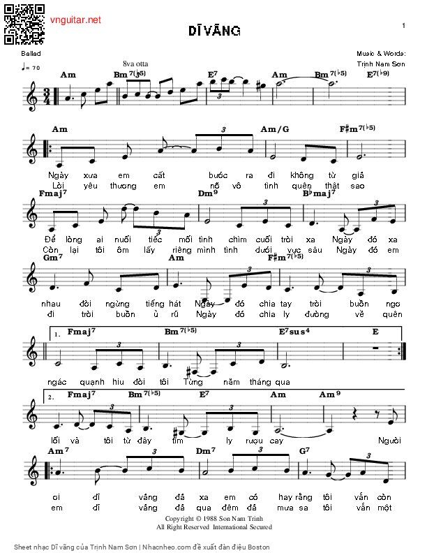 Trịnh Nam Sơn Ngày xưa em cất bước ra đi không từ giã [PDF] [Sheet] [Lời H.A] [Mp4/Midi]