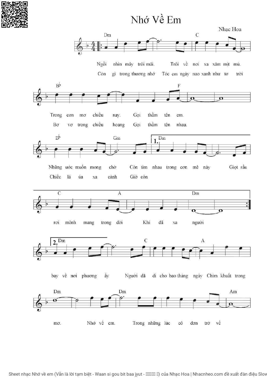 Các sheet PDF tương tự Nhớ về em (Vẫn là lời tạm biệt - Waan si gou bit baa jyut - 还是告别吧 粤):