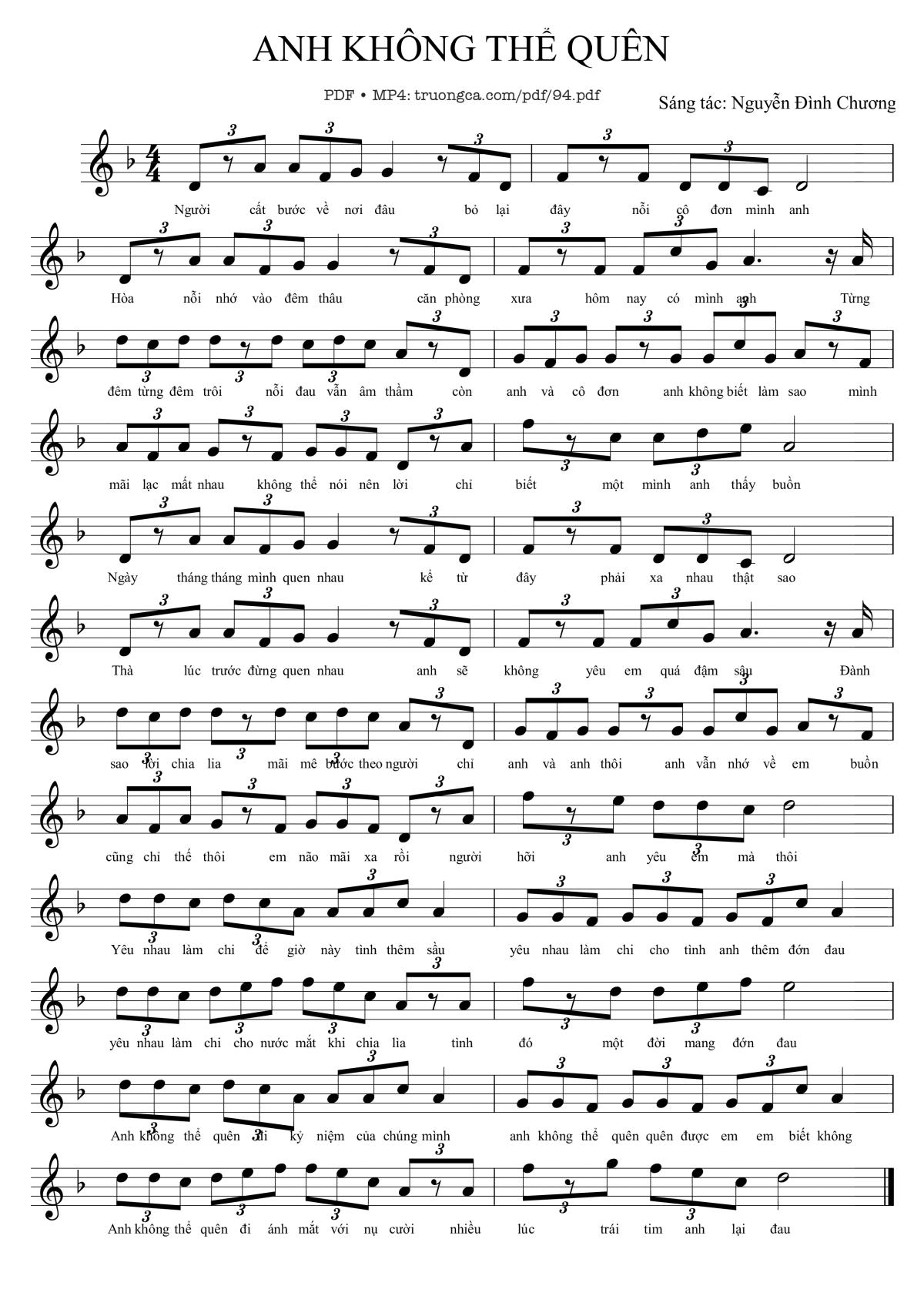 Phần nghe hát Anh không thể quên (Nguyễn Đình Chương) được nhúng từ Youtube, Musescore hoặc link ngoài và chịu sự kiểm soát bản quyền của bên thứ ba đó, vì vậy có thể bị xóa hoặc chèn quảng cáo bất kỳ lúc nào. Nếu bạn không nghe - xem được ca sĩ hát tức là đã bị Youtube hoặc Musescore kiểm soát.