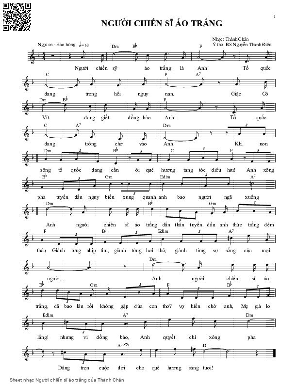 Thành Chân Người chiến sĩ áo trắng là anh Tổ quốc đang trong hồi nguy nan [PDF] [Sheet] [Lời H.A] [Mp4/Midi]