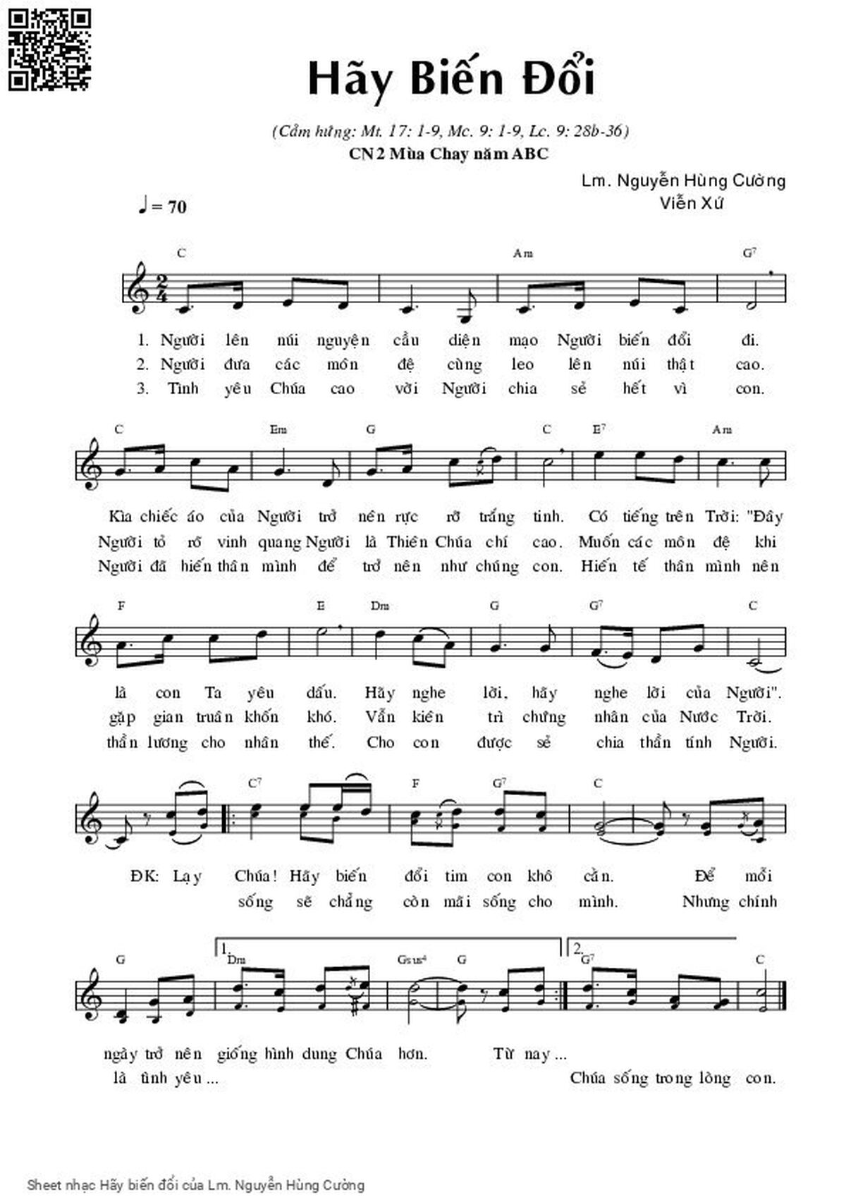 Lm. Nguyễn Hùng Cường Người lên núi nguyện cầu diện mạo Người biến đổi đi [PDF] [Sheet] [Lời H.A] [Mp4/Midi]