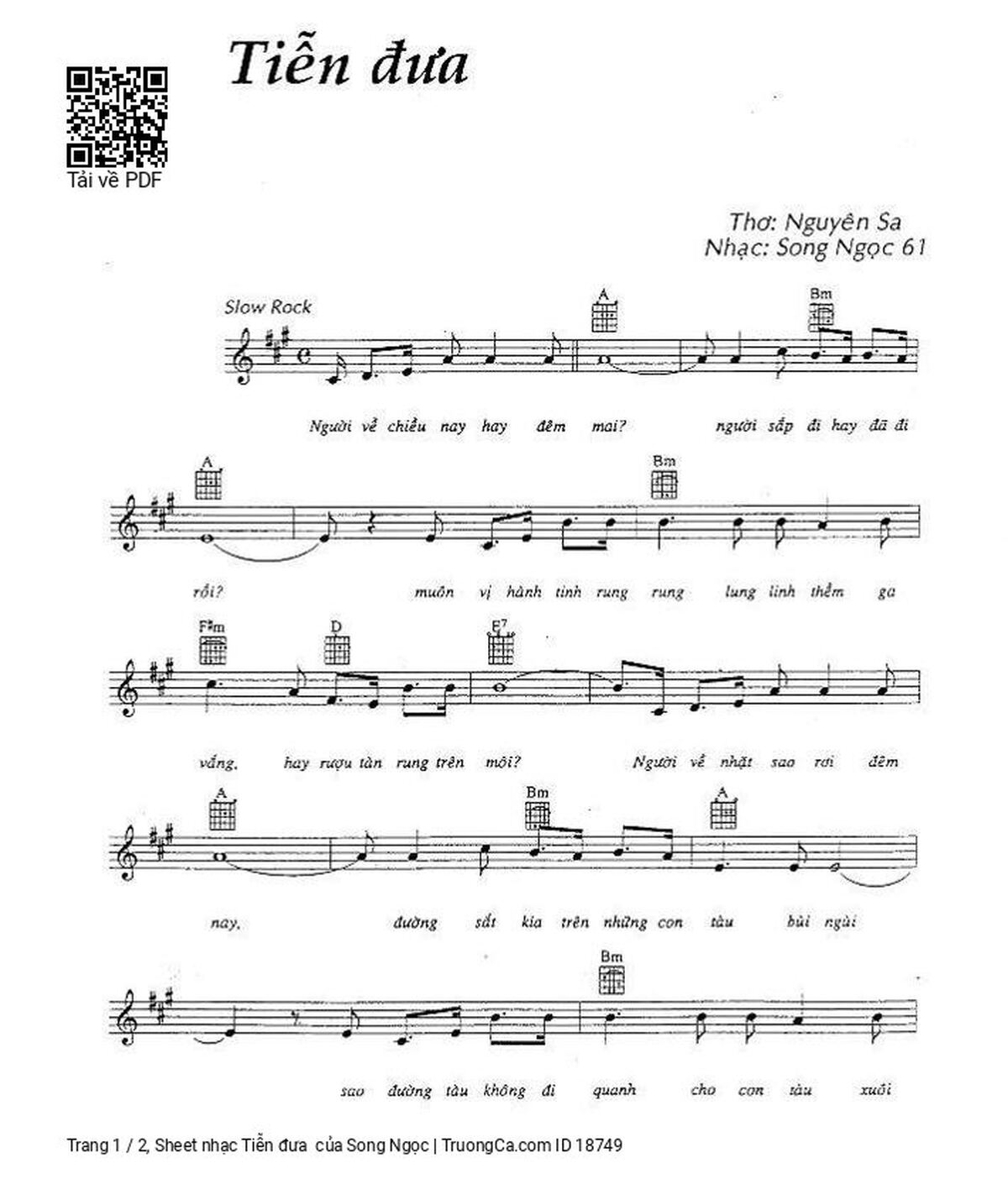 Chọn nút dấu + để tăng tông lên nửa cung, nút dấu - để giảm tông xuống nửa cung. Rê chuột vào hợp âm để xem các thế bấm hợp âm của bài hát Tiễn đưa .
