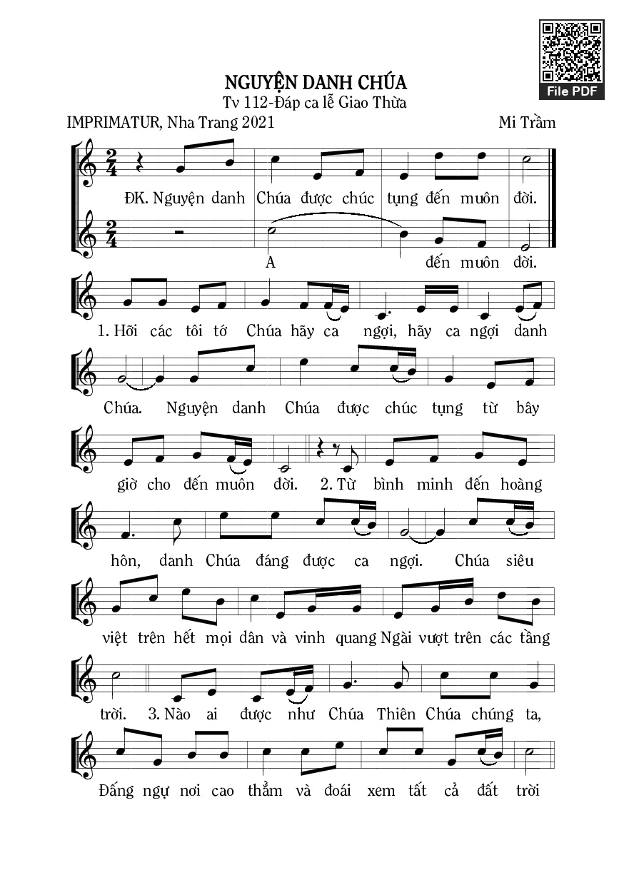 Các sheet PDF tương tự Thánh Vịnh 112, Nguyện Danh Chúa: