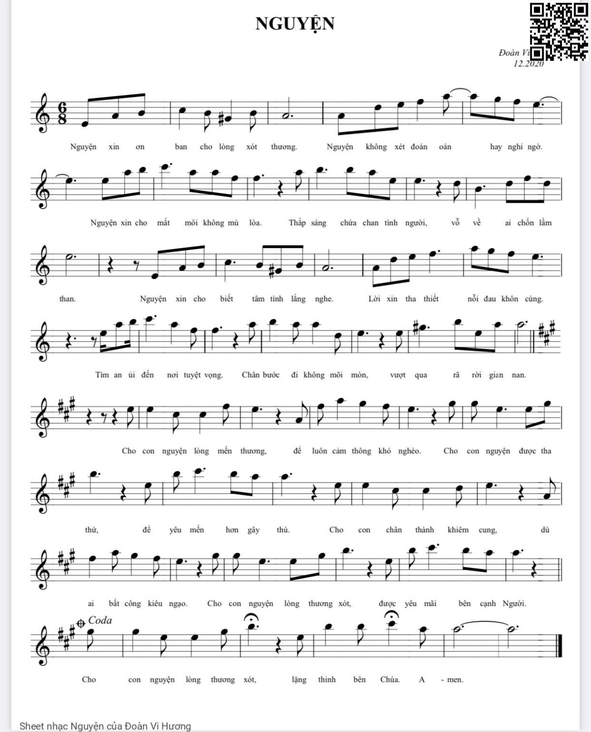 Đoàn Vi Hương Nguyện xin ơn ban cho lòng xót thương Nguyện không xét đoán [PDF] [Sheet] [Lời H.A] [Mp4/Midi]