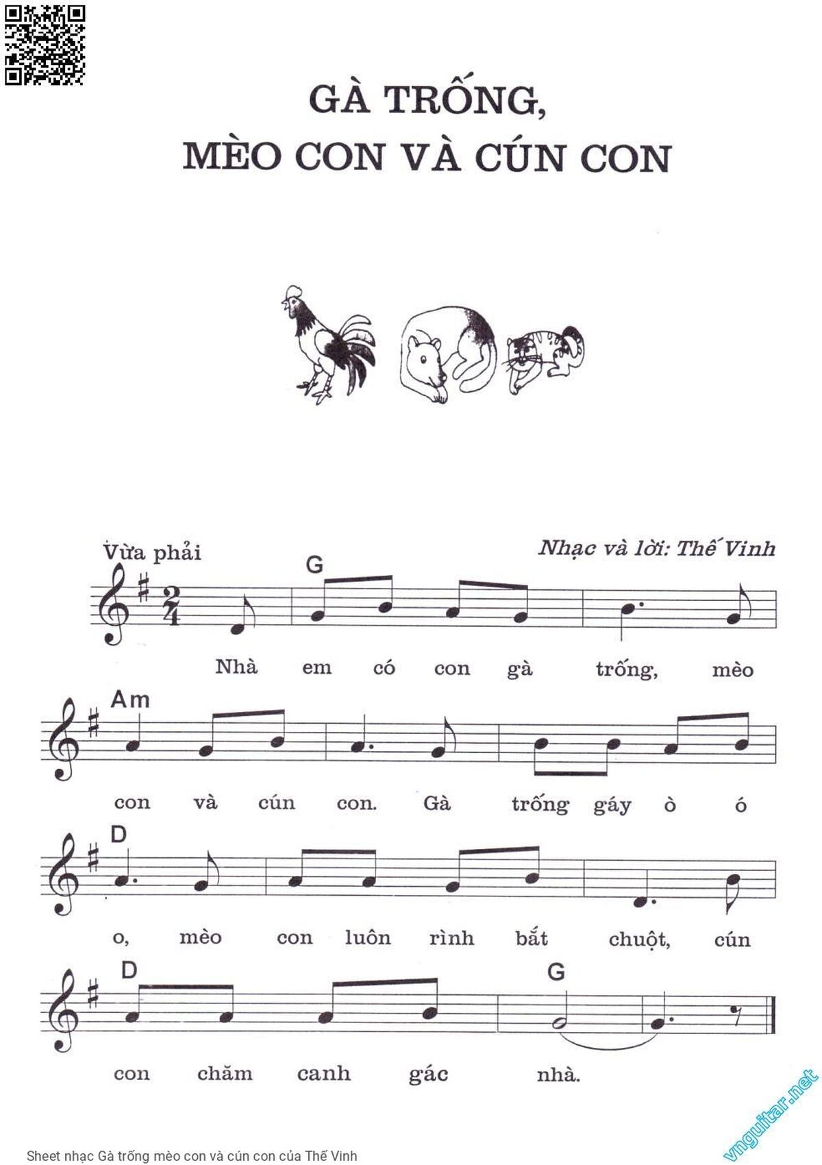 Thế Vinh Nhà em có con gà trống Mèo con và cún con [PDF] [Sheet] [Lời H.A] [Mp4/Midi]