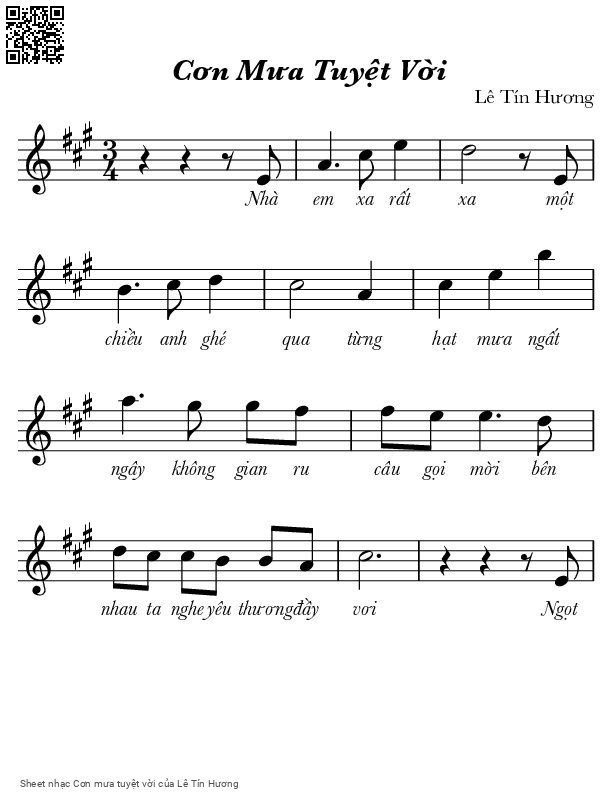 Lê Tín Hương Nhà em xa rất xa Một chiều anh ghé qua [PDF] [Sheet] [Lời H.A] [Mp4/Midi]
