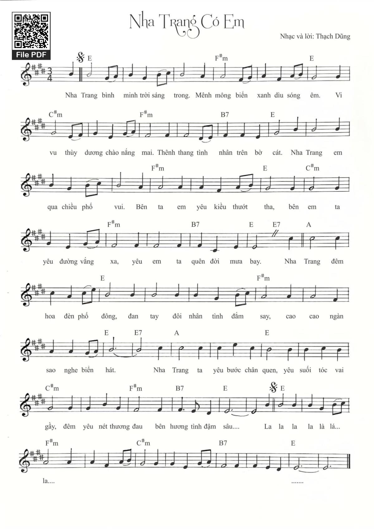 Thạch Dũng Nha Trang bình minh trời sáng trong Mênh mông biển xanh dịu sóng êm [PDF] [Sheet] [Lời H.A] [Mp4/Midi]