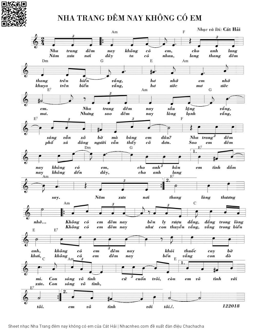 Cát Hải Nha Trang đêm nay không có em [PDF] [Sheet] [Lời H.A] [Mp4/Midi]