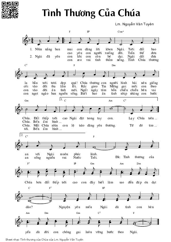 Chọn nút dấu + để tăng tông lên nửa cung, nút dấu - để giảm tông xuống nửa cung. Rê chuột vào hợp âm để xem các thế bấm hợp âm của bài hát Tình thương của Chúa.