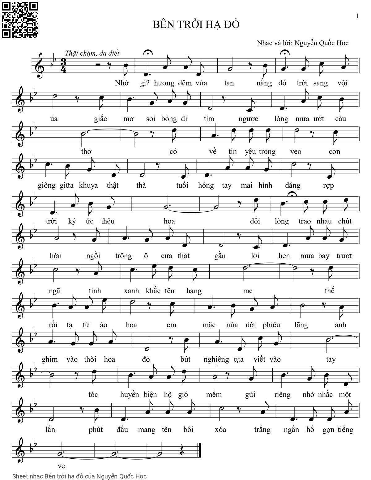 Nguyễn Quốc Học Nhớ gì hương đêm vừa tan Nắng đỏ trời sang gội úa [PDF] [Sheet] [Lời H.A] [Mp4/Midi]