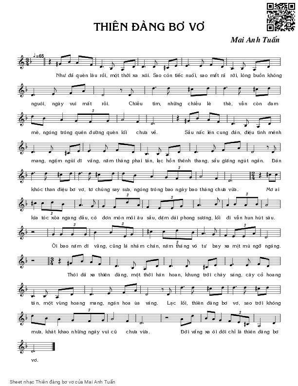 Mai Anh Tuấn Như đã quên lâu rồi một thời xa xôi [PDF] [Sheet] [Lời H.A] [Mp4/Midi]