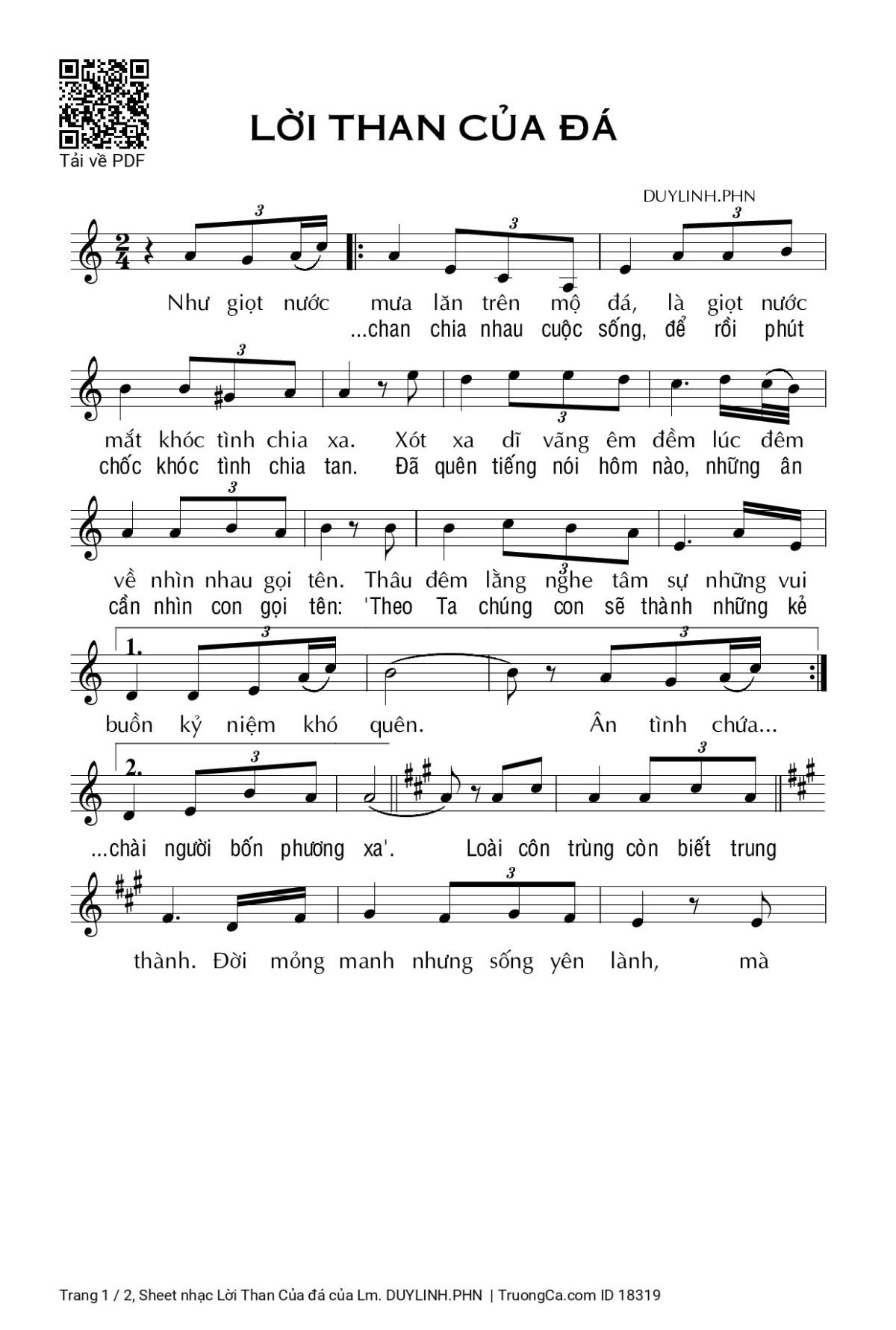 Chọn nút dấu + để tăng tông lên nửa cung, nút dấu - để giảm tông xuống nửa cung. Rê chuột vào hợp âm để xem các thế bấm hợp âm của bài hát Lời Than Của đá.