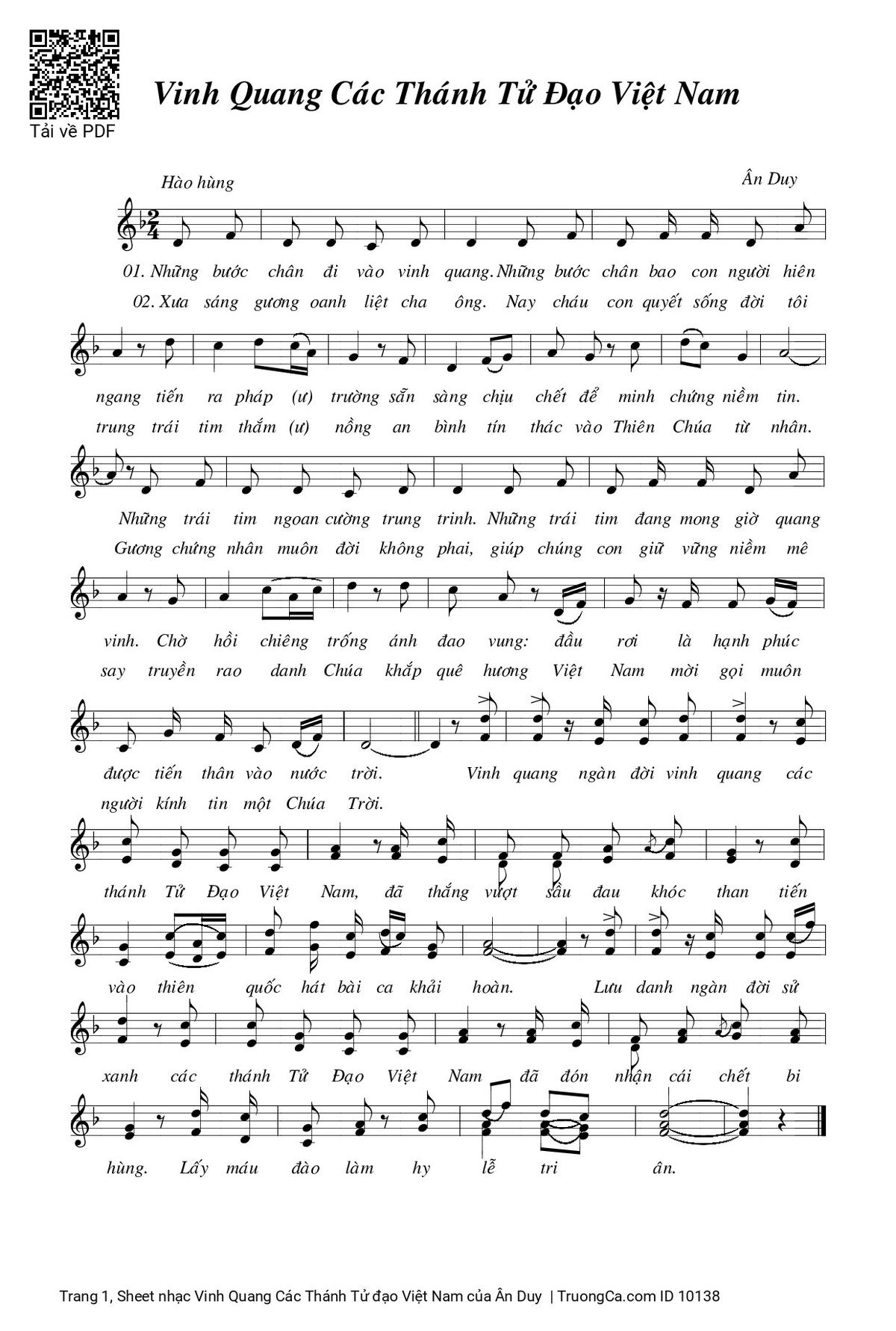 Ân Duy Những bước chân đi vào vinh quang Những bước chân bao con người hiên ngang tiến ra pháp trường sẵn sàng chịu chết để minh chứng niềm [PDF] [Sheet] [Lời H.A]