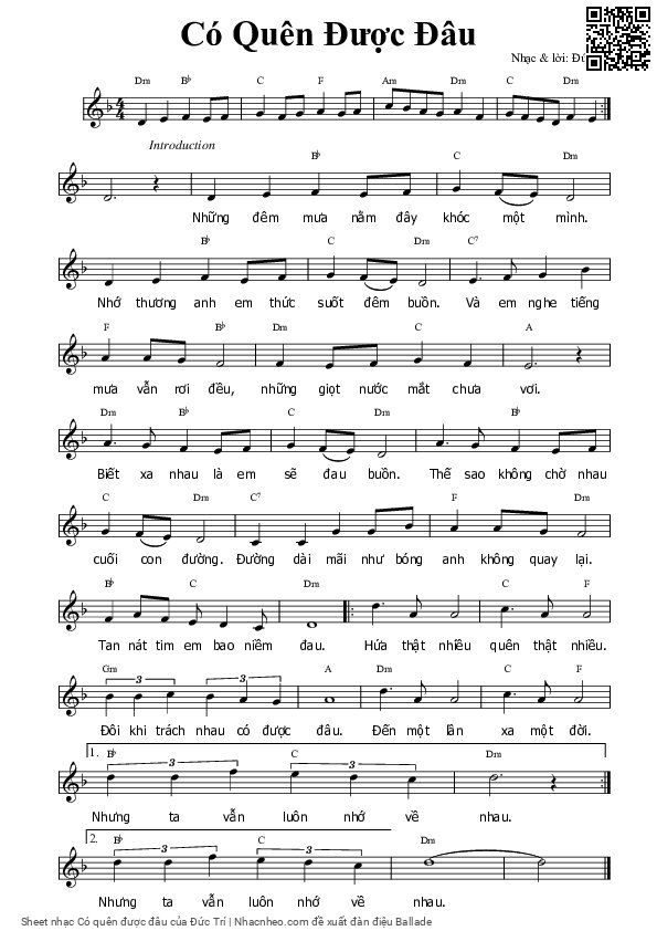 Đức Trí Những đêm mưa nằm đây khóc một mình [PDF] [Sheet] [Lời H.A] [Mp4/Midi]