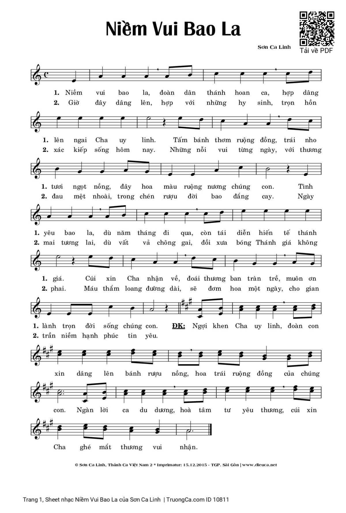 Sơn Ca Linh Niềm vui bao la đoàn dân thánh hoan ca hợp dâng lên ngai Cha uy linh [PDF] [Sheet] [Lời H.A] [Mp4/Midi]