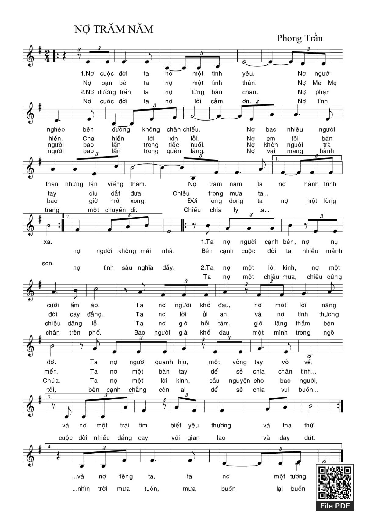 Lm. Phong Trần Nợ cuộc đời ta nợ một tình yêu Nợ người nghèo bên đường không chăn chiếu [PDF] [Sheet] [Lời H.A] [Mp4/Midi]