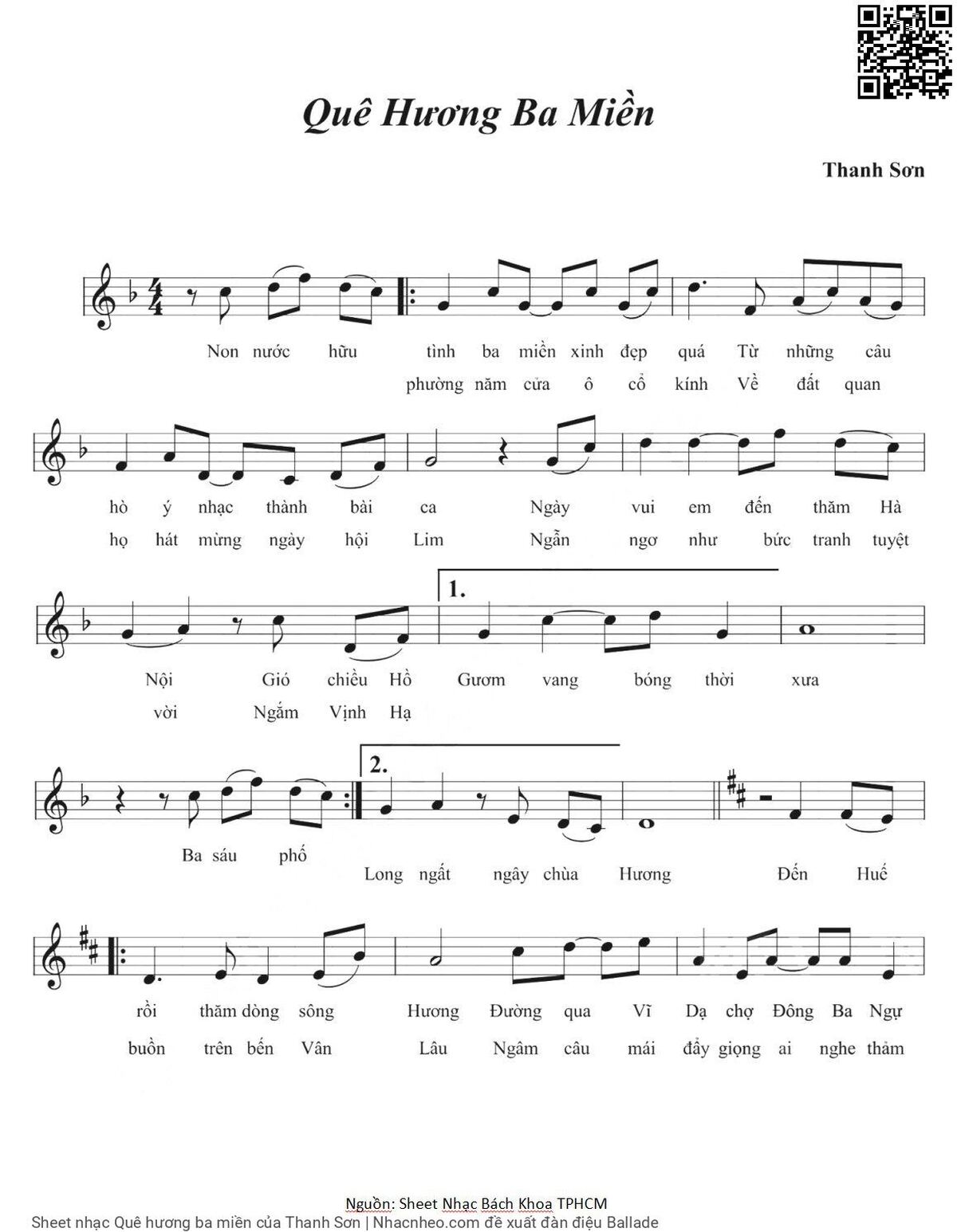 Thanh Sơn Non nước hữu tình ba miền xinh đẹp quá [PDF] [Sheet] [Lời H.A] [Mp4/Midi]