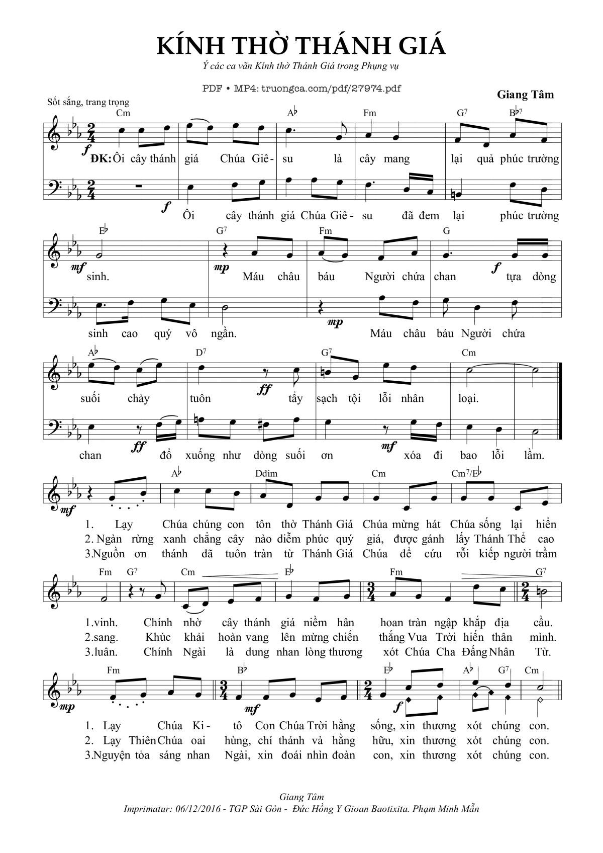 Giang Tâm Ôi cây thánh giá Chúa Giêsu là cây mang lại quả phúc trường sinh [PDF] [Sheet] [Lời H.A] [Mp4/Midi]