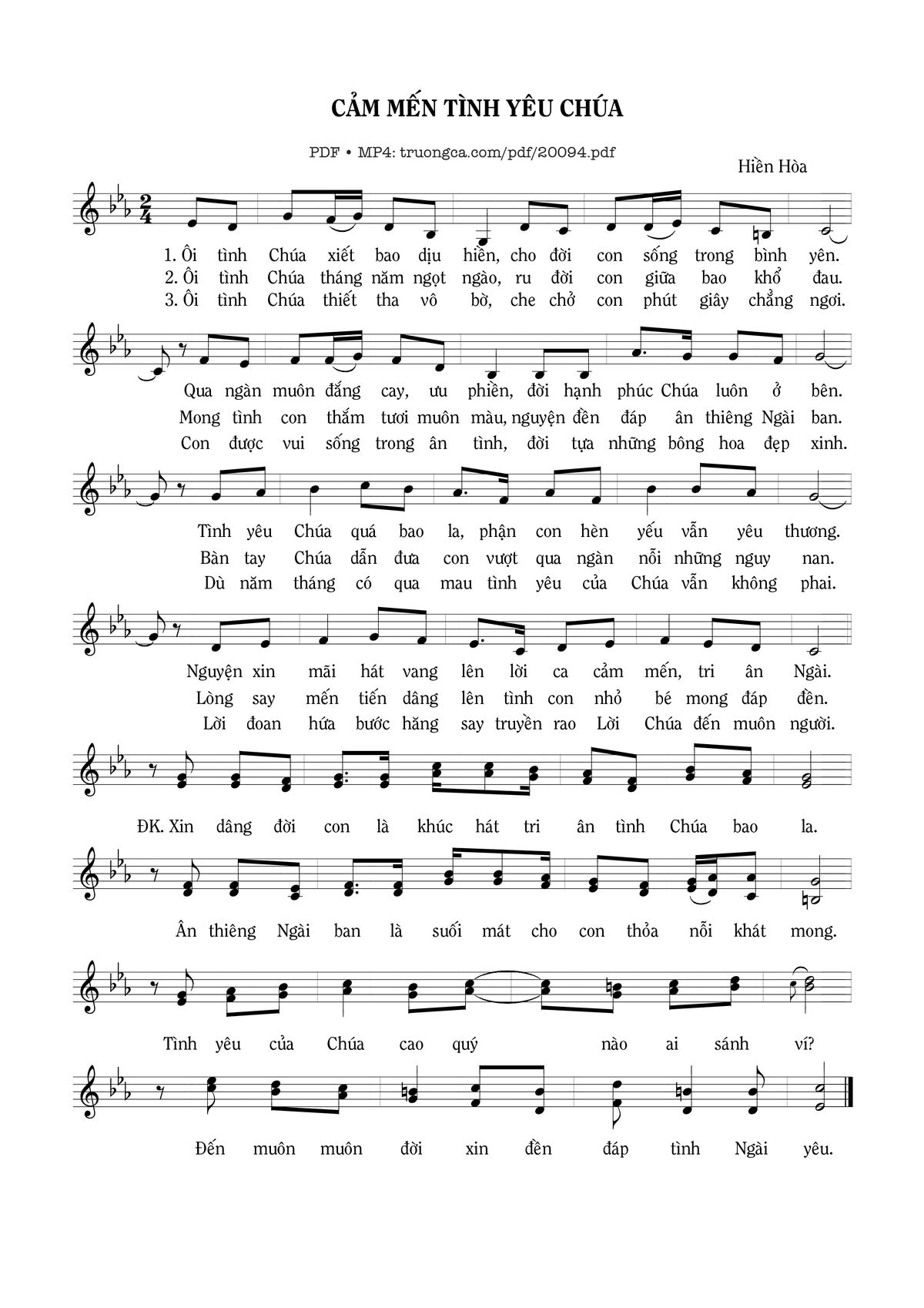 Hiền Hòa Ôi tình Chúa xiết bao dịu hiền [PDF] [Sheet] [Lời H.A] [Mp4/Midi]