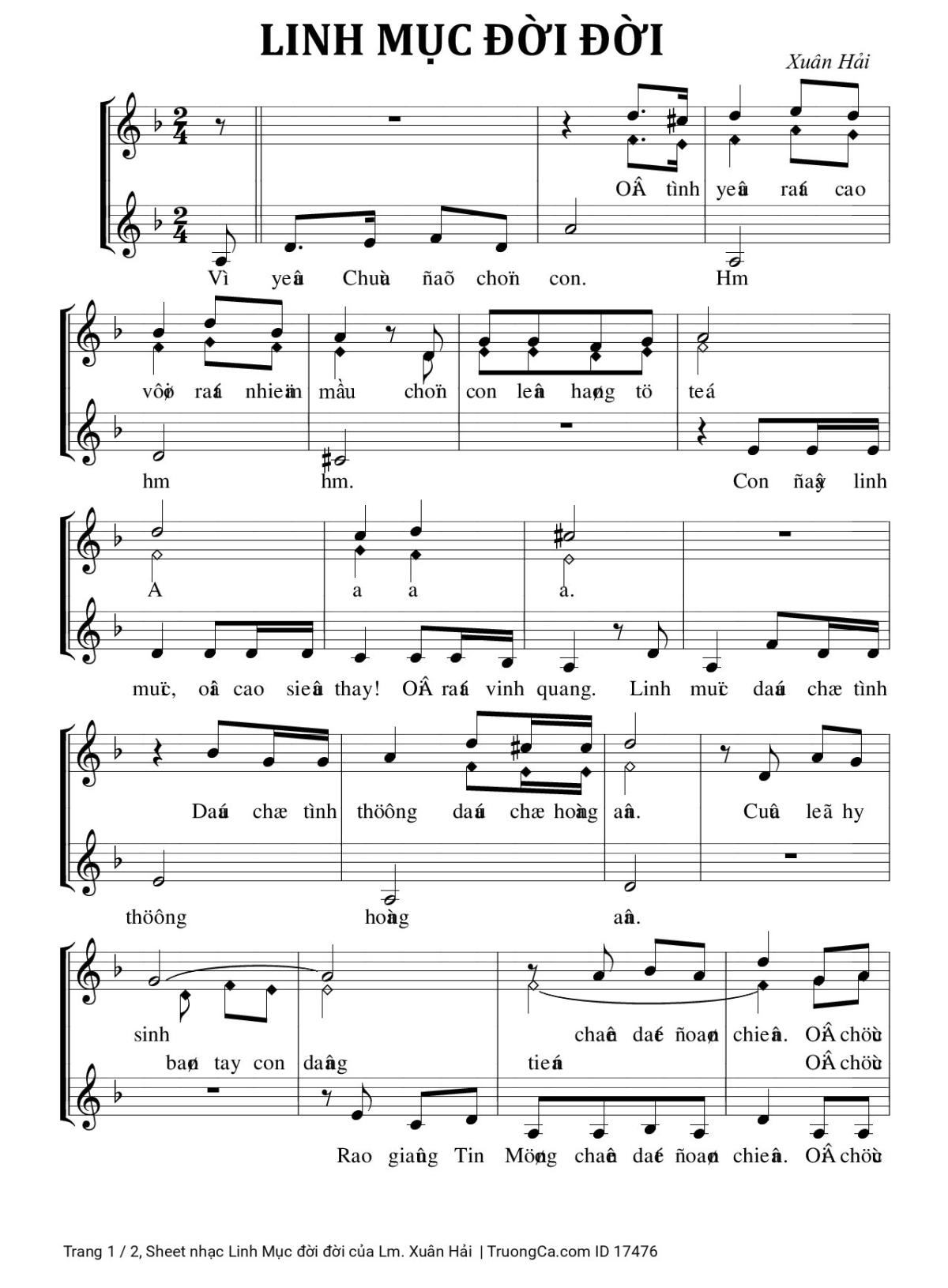 Chọn nút dấu + để tăng tông lên nửa cung, nút dấu - để giảm tông xuống nửa cung. Rê chuột vào hợp âm để xem các thế bấm hợp âm của bài hát Linh Mục đời đời.
