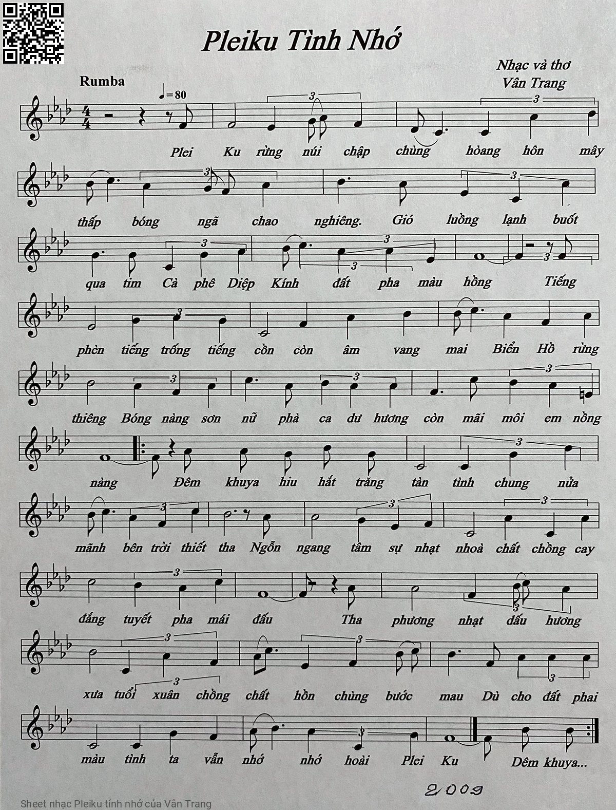 Vân Trang Pleiku rừng núi chập chùng Hoàng hôn mây thấp bóng ngã chao nghiêng [PDF] [Sheet] [Lời H.A] [Mp4/Midi]