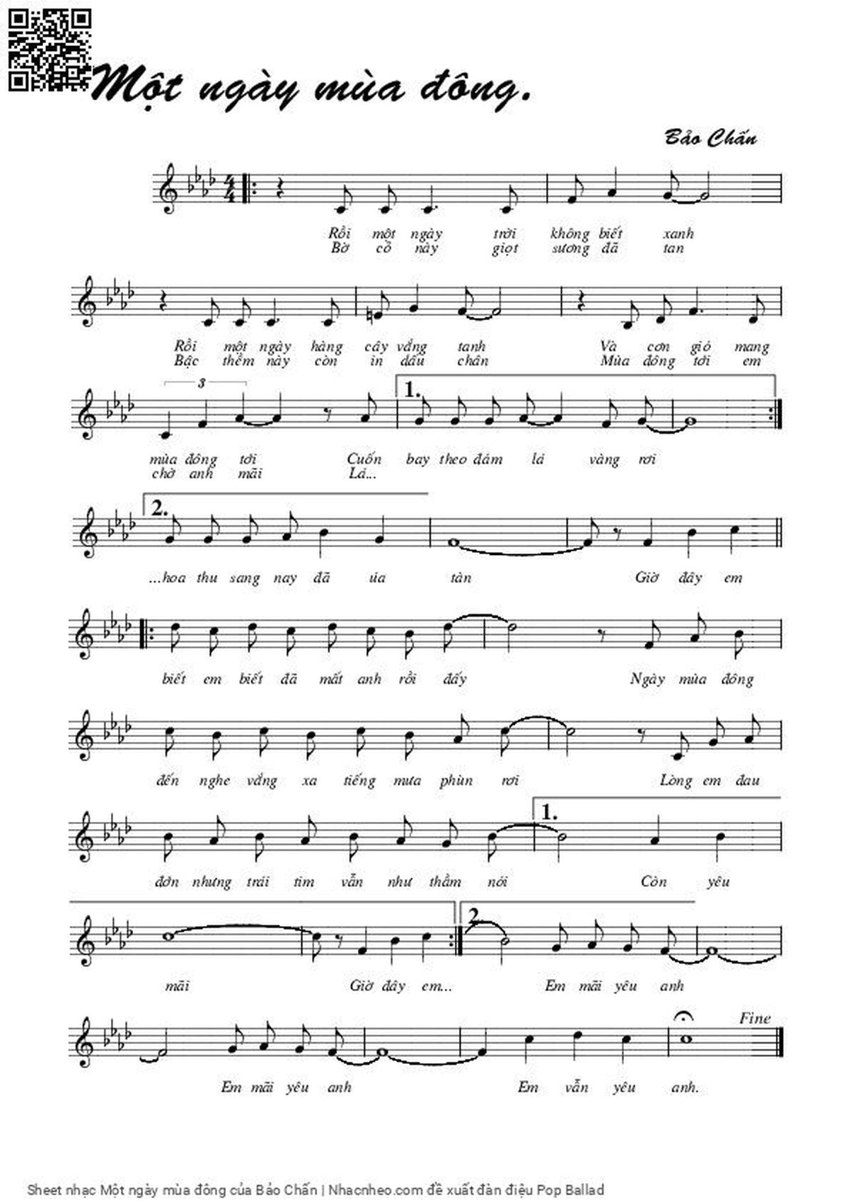 Chọn nút dấu + để tăng tông lên nửa cung, nút dấu - để giảm tông xuống nửa cung. Rê chuột vào hợp âm để xem các thế bấm hợp âm của bài hát Một ngày mùa đông.