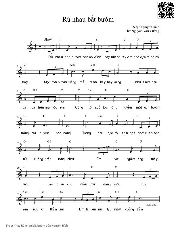 Nguyên Bích Rủ nhau rình bướm bên ao đình Này nhanh tay em nhé cựa mình nó bay [PDF] [Sheet] [Lời H.A] [Mp4/Midi]