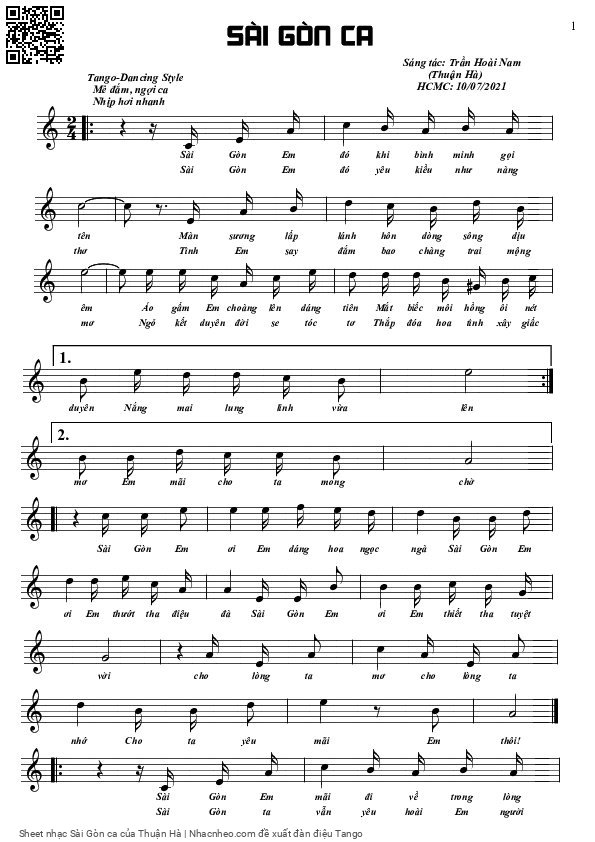 Thuận Hà Sài Gòn em đó khi bình minh gọi tên Màn sương lấp lánh hôn dòng sông dịu êm [PDF] [Sheet] [Lời H.A] [Mp4/Midi]