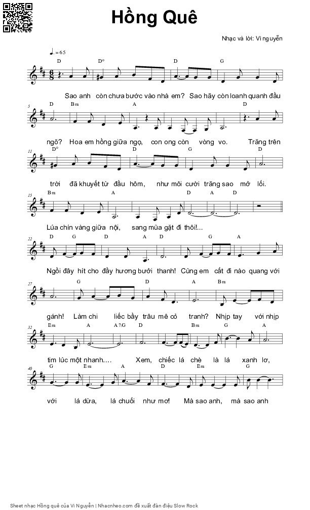 Phần nghe hát Hồng quê (Vi Nguyễn) được nhúng từ Youtube, Musescore hoặc link ngoài và chịu sự kiểm soát bản quyền của bên thứ ba đó, vì vậy có thể bị xóa hoặc chèn quảng cáo bất kỳ lúc nào. Nếu bạn không nghe - xem được ca sĩ hát tức là đã bị Youtube hoặc Musescore kiểm soát.