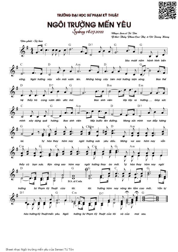 Sensei Tú Tôn Sáu mươi năm hành trình bền vững Ngôi trường này vẫn mãi vươn lên [PDF] [Sheet] [Lời H.A] [Mp4/Midi]