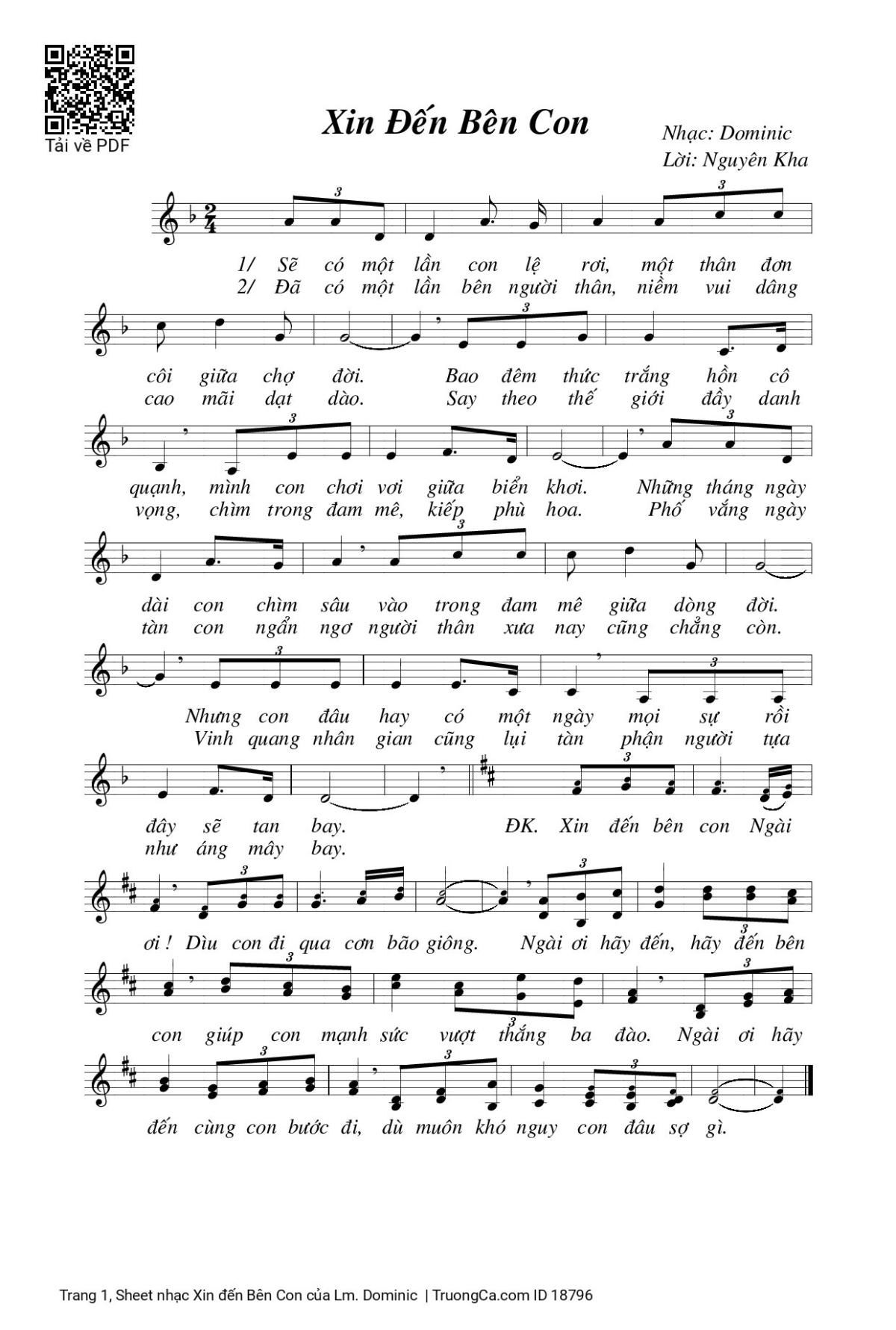 Điệp khúc. Xin đến bên con Ngài ơi! Dìu con đi qua cơn bão giông. Ngài ơi hãy đến, hãy đến bên con giúp con mạnh sức vượt thắng ba đào, Ngài ơi hãy đến cùng con bước đi, dù muôn khó nguy con đâu sợ gì.