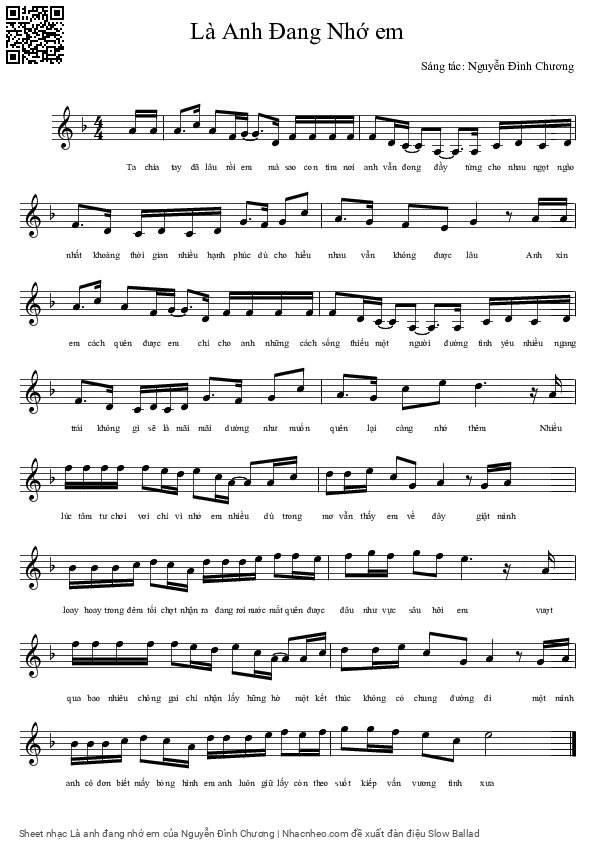 Nguyễn Đình Chương Ta chia tay đã lồ rồi em Mà sao con tim nơi anh vẫn đong đầy [PDF] [Sheet] [Lời H.A] [Mp4/Midi]