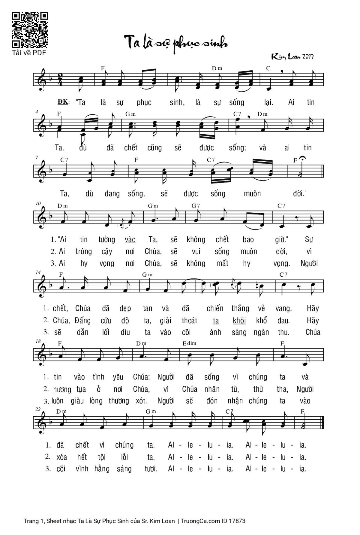 Các sheet PDF tương tự Ta Là Sự Phục Sinh: