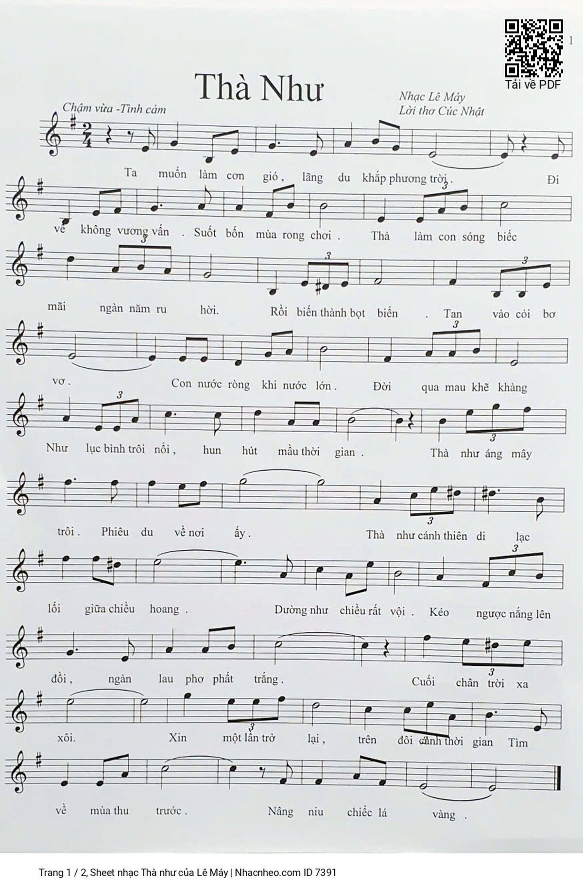 Lê Máy Ta muốn làm cơn gió Lãng du khắp phương trời [PDF] [Sheet] [Lời H.A] [Mp4/Midi]