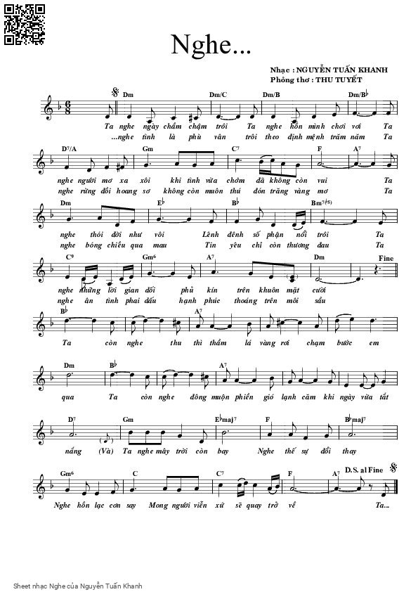 Nguyễn Tuấn Khanh Ta nghe ngày chầm chậm trôi Ta nghe hồn mình chơi vơi [PDF] [Sheet] [Lời H.A] [Mp4/Midi]