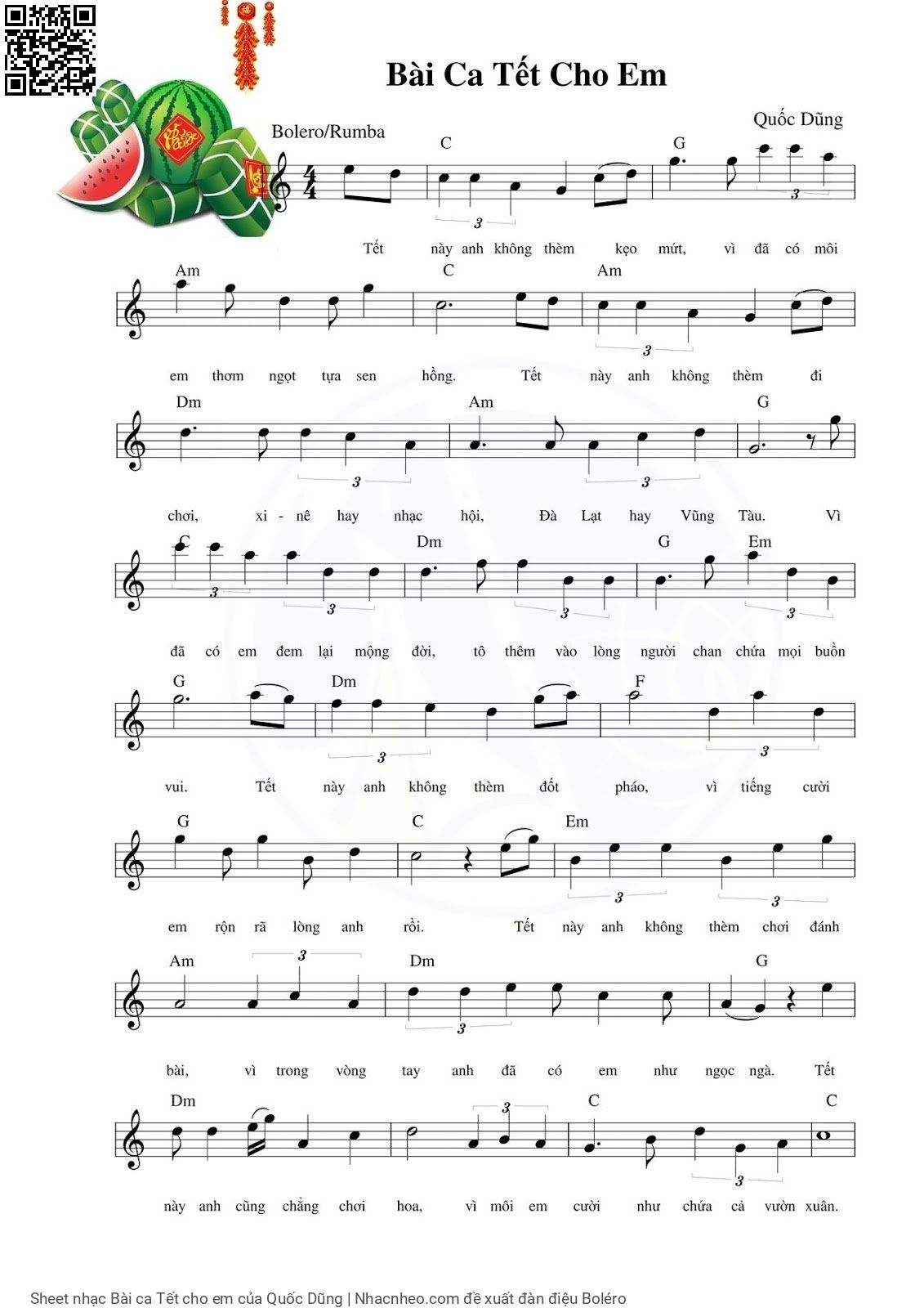 Quốc Dũng Tết này anh không thèm kẹo mứt Vì đã có môi em thơm ngọt tựa sen hồng [PDF] [Sheet] [Lời H.A] [Mp4/Midi] [Lời bình - giai thoại]