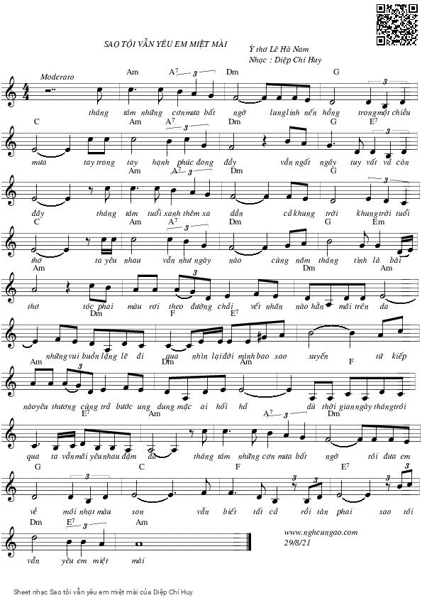 Diệp Chí Huy Tháng tám những cơn mưa bất ngờ Tôi đưa em về ngôi nhà màu son [PDF] [Sheet] [Lời H.A] [Mp4/Midi]