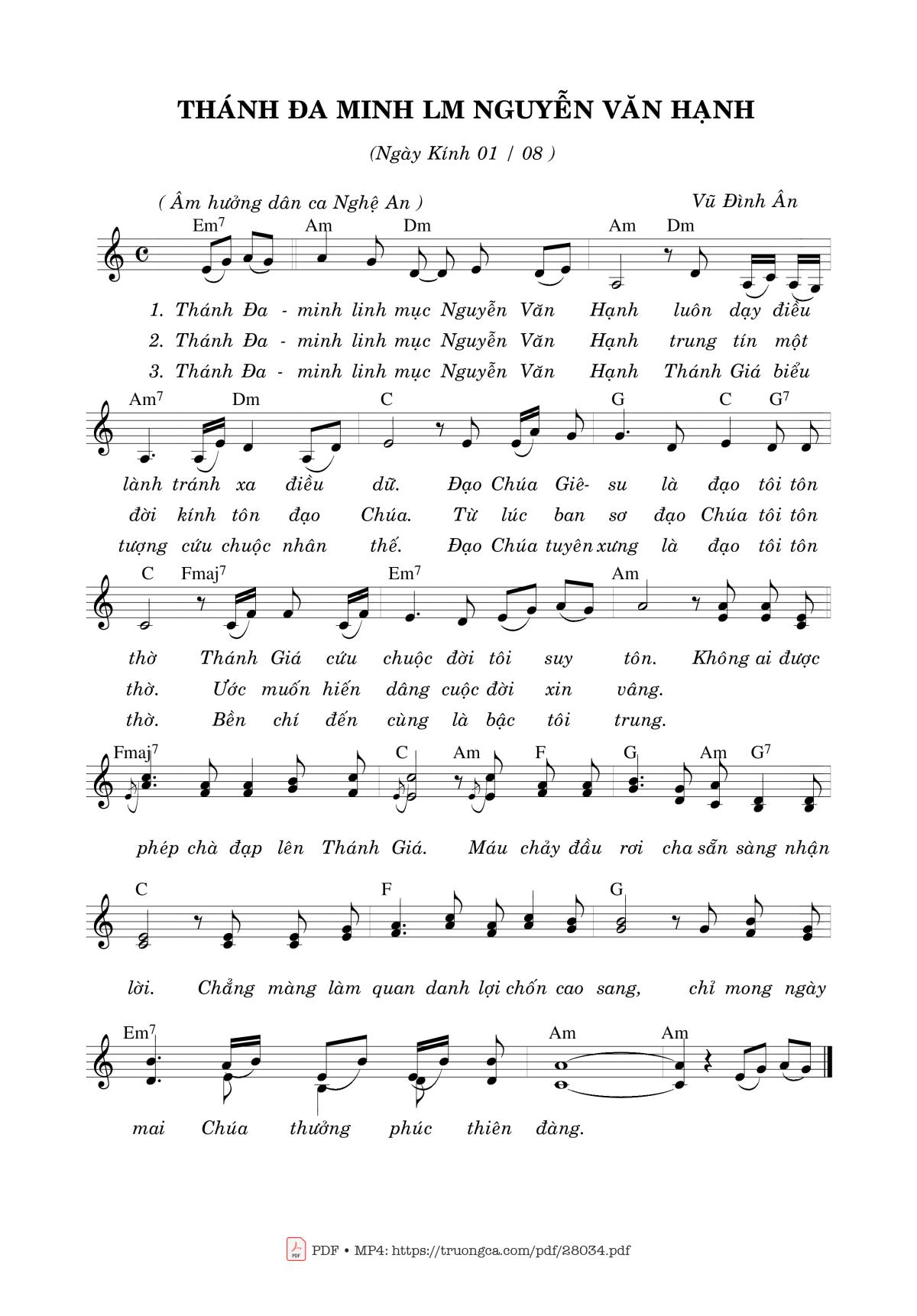 Vũ Đình Ân Thánh Đaminh Linh mục Nguyễn Văn Hạnh luôn dạy điều lành tránh xa điều dữ [PDF] [Sheet] [Lời H.A] [Mp4/Midi]