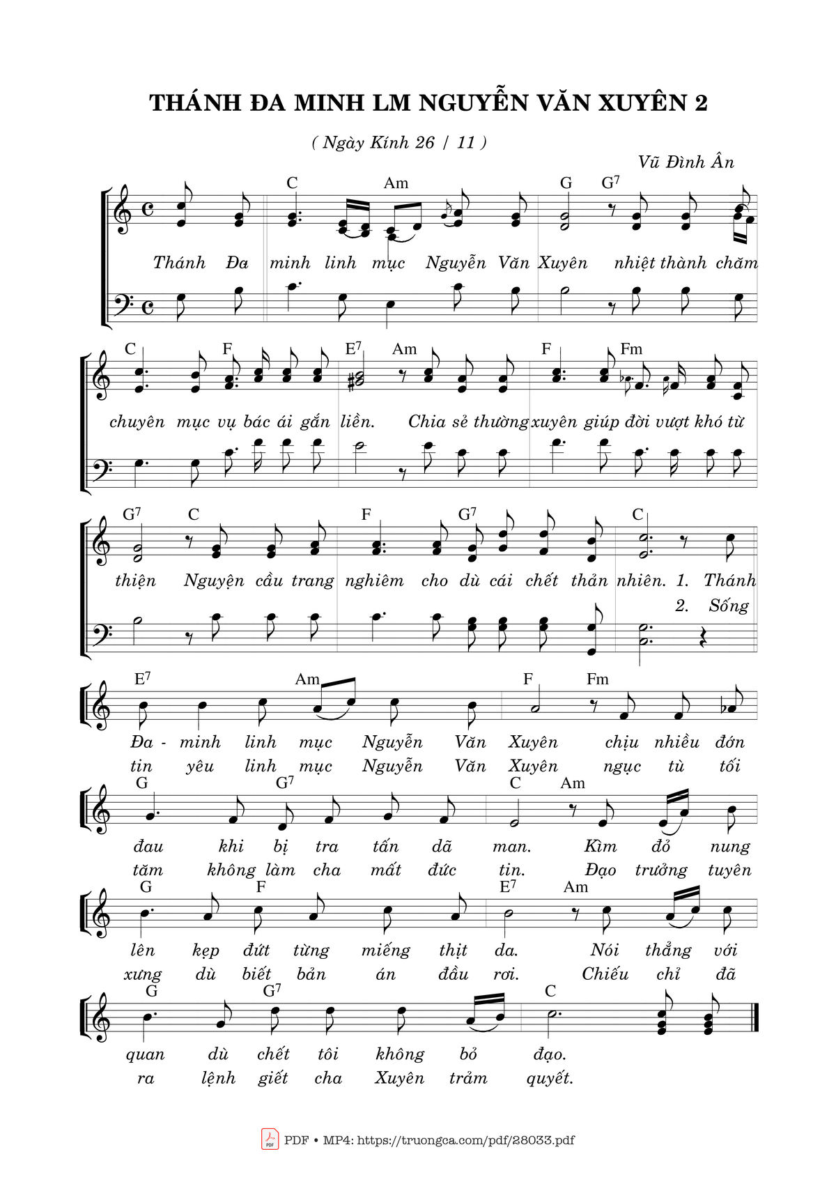 Vũ Đình Ân Thánh Đaminh Linh mục Nguyễn Văn Xuyên nhiệt thành chăm chuyên mục vụ bác ái gắn liền [PDF] [Sheet] [Lời H.A] [Mp4/Midi]