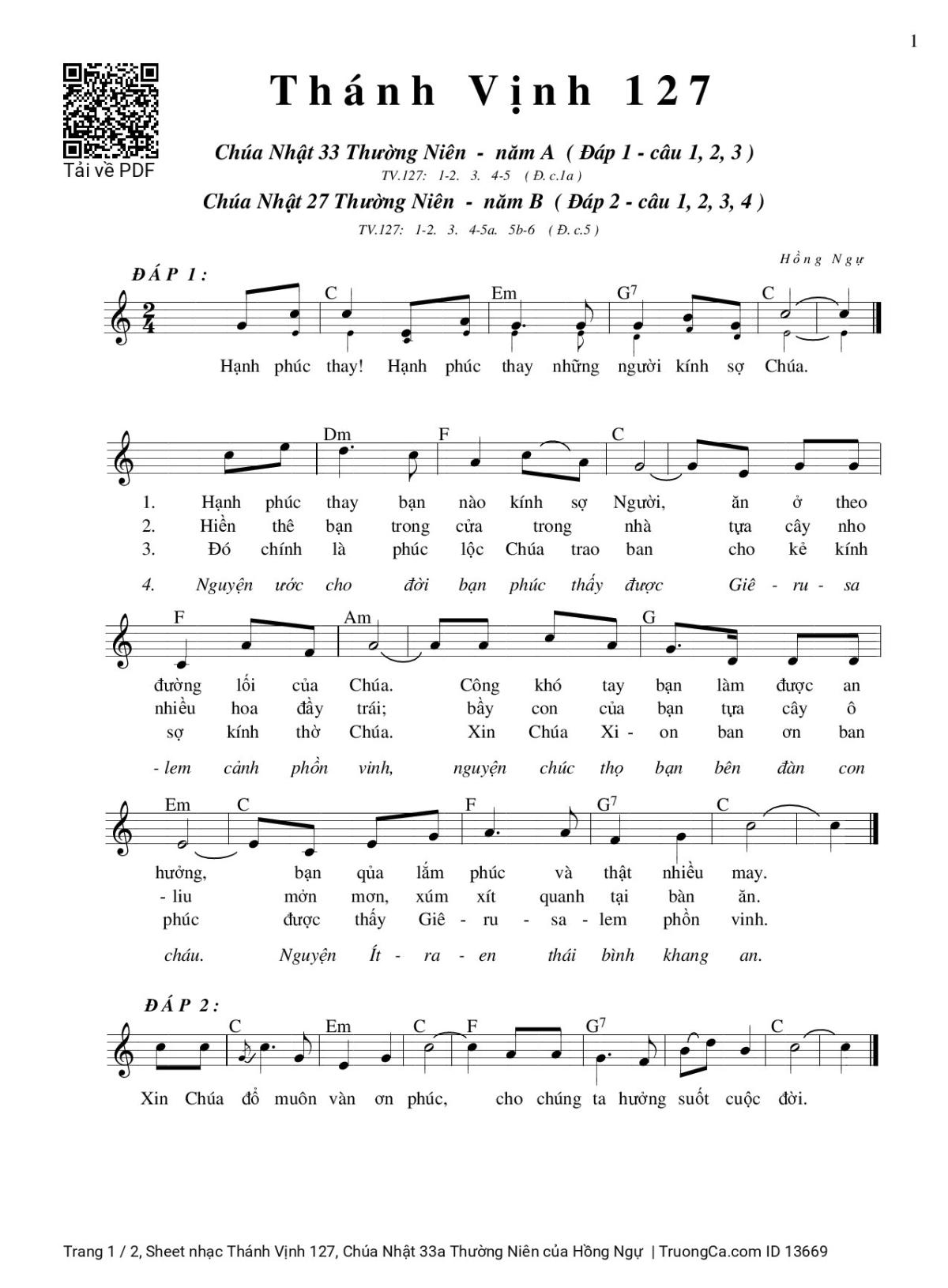 Các sheet PDF tương tự Thánh Vịnh 127, Chúa Nhật 33a Thường Niên: