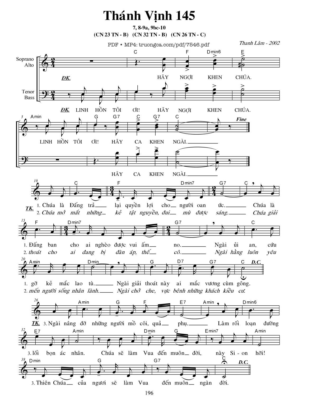 Thể loại 🌾 Nhạc Thánh Ca, 🌾 Thánh Vịnh - Đáp Ca, 🌾 Thánh ca Imprimatur, 🌾 Thánh Vịnh 145