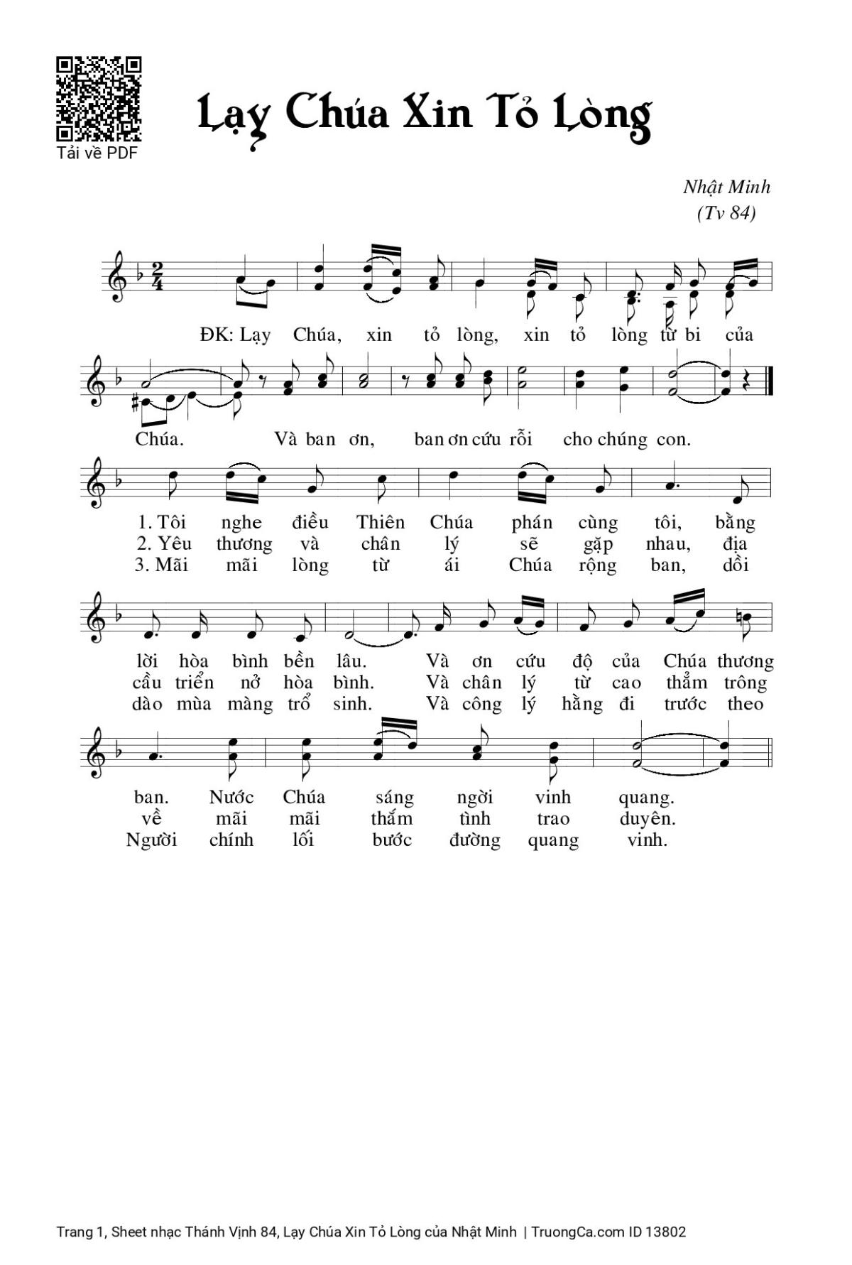 Các sheet PDF tương tự Thánh Vịnh 84, Lạy Chúa Xin Tỏ Lòng: