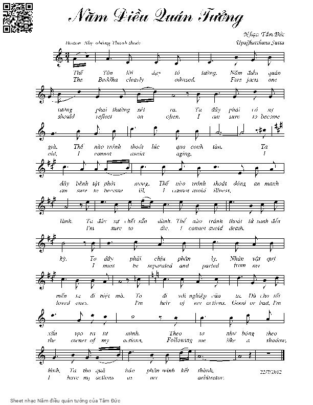Tâm Đức Thế Tôn lời dạy tỏ tường Năm điều quán tưởng phải thường xét ra [PDF] [Sheet] [Lời H.A] [Mp4/Midi]