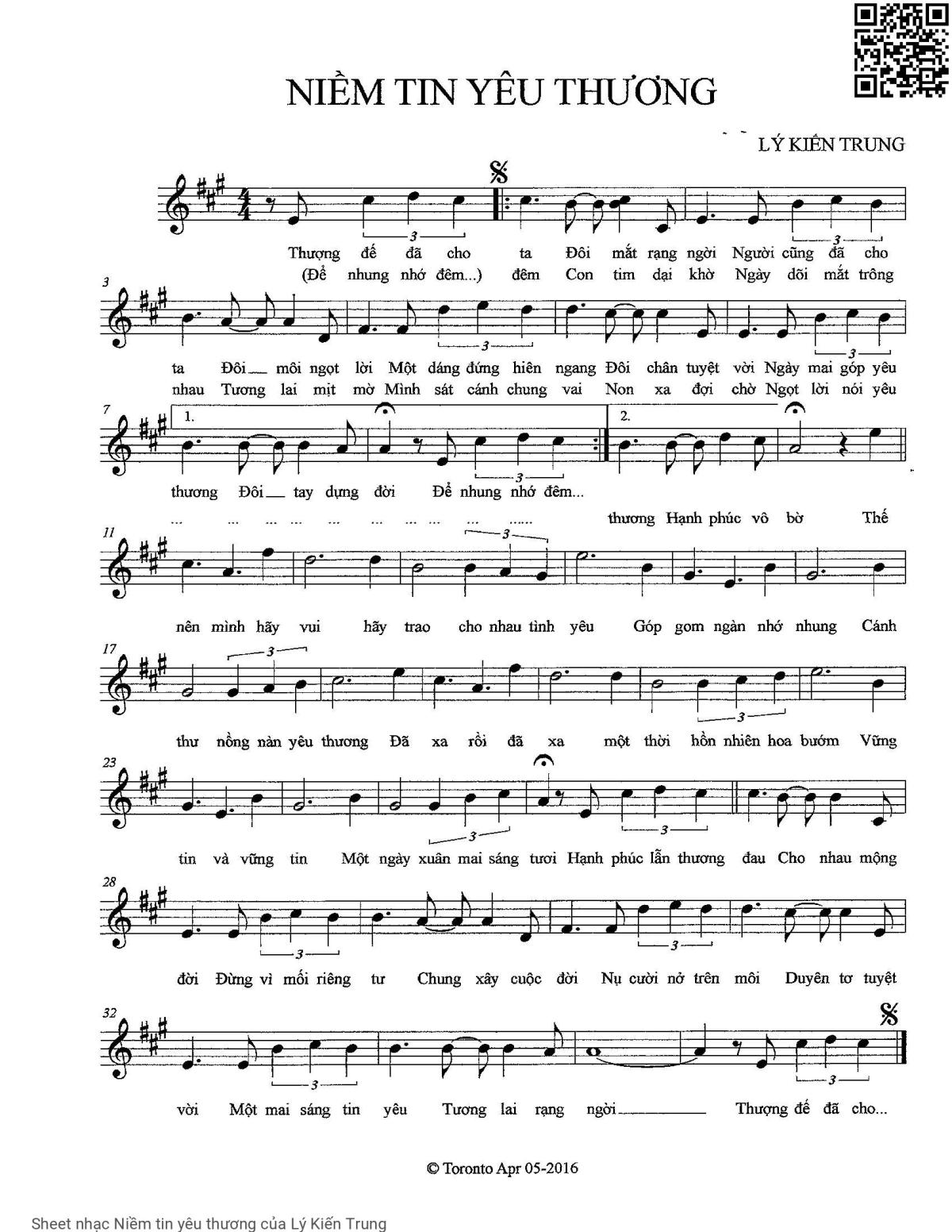 Phần nghe hát Niềm tin yêu thương (Lý Kiến Trung) được nhúng từ Youtube, Musescore hoặc link ngoài và chịu sự kiểm soát bản quyền của bên thứ ba đó, vì vậy có thể bị xóa hoặc chèn quảng cáo bất kỳ lúc nào. Nếu bạn không nghe - xem được ca sĩ hát tức là đã bị Youtube hoặc Musescore kiểm soát.