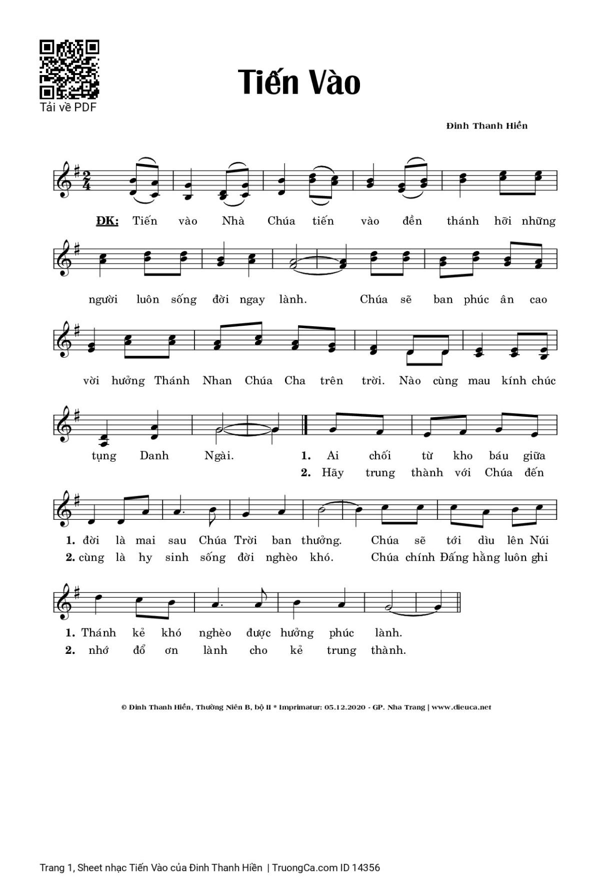 Điệp khúc: Tiến vào Nhà Chúa tiến vào đền thánh hỡi những người luôn sống đời ngay lành. Chúa sẽ ban phúc ân cao vời hưởng Thánh Nhan Chúa Cha trên trời. Nào cùng mau kính chúc tụng Danh Ngài.