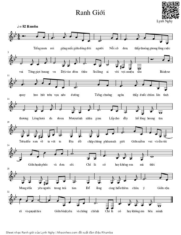 Lynh Nghy Tiếng mưa rơi giăng mắc giữa dòng đời người [PDF] [Sheet] [Lời H.A] [Mp4/Midi]