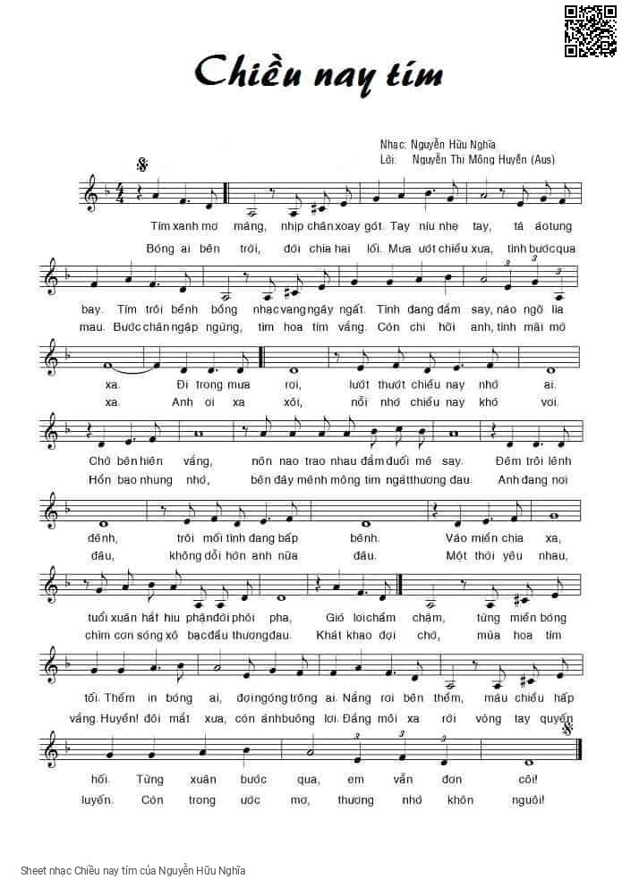 Nguyễn Hữu Nghĩa Tím xanh mơ màng nhịp chân xoay gót tay níu nhẹ tay tà áo tung bay [PDF] [Sheet] [Lời H.A] [Mp4/Midi]